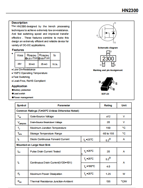 20V 5.2A 貼片MOS SOT-23 HN2300
