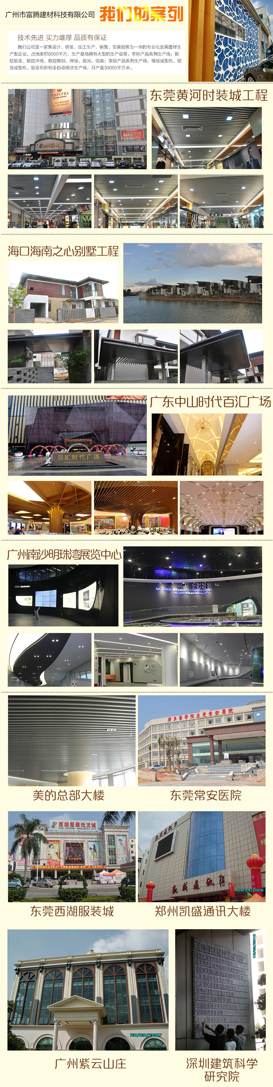 外墻裝飾、包柱裝飾、大堂門面大型建筑、KTV,酒店,學校,醫院,公共場所,吊頂天花,天橋,體肓廣場,商場等