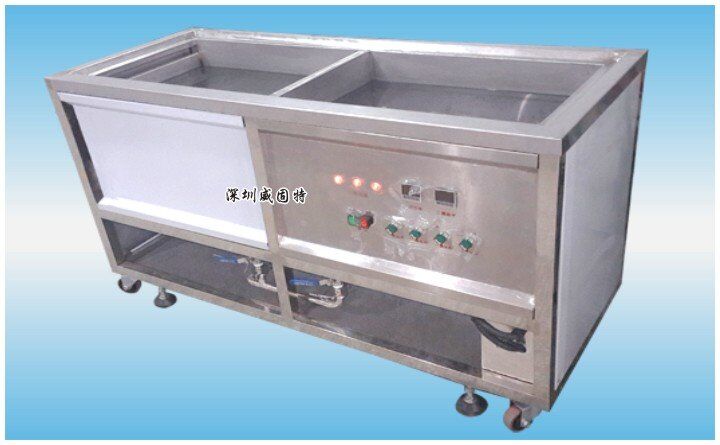 深圳威固特VGT-209FH雙槽超聲波清洗機的技術參數(shù)做為初步了解——內槽尺寸為:L640*W440*H350MM;外形尺寸為:L1400*W600*H850;超聲波功率:28K;清洗工藝:1超聲波清洗*2超聲波漂洗。