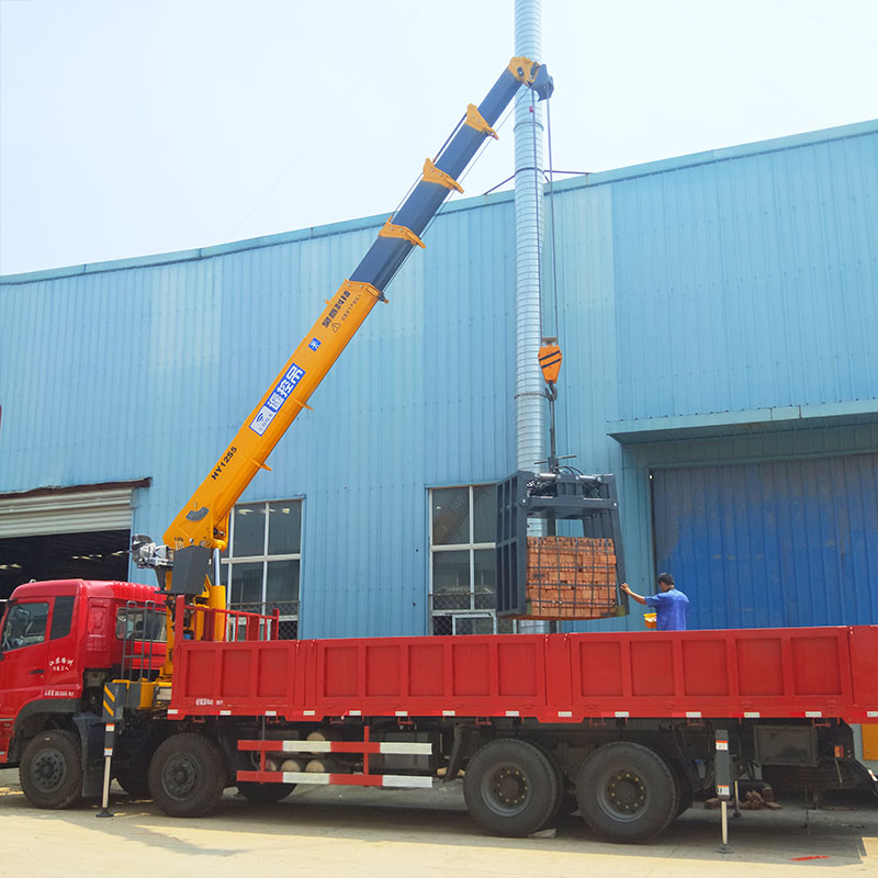 隨車吊抱磚機針對紅磚,水泥磚,加氣磚等設計不同種類抱磚夾具,不同的開口尺寸。夾具可360°旋轉,夾臂力度可調節,牢度可靠,抱夾數量多。隨車吊抱磚機滿足搬運,裝車,運輸等一系列一體式流程,方便操作,作業效率高。