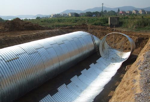 鋼波紋涵管是采用波紋狀管或由波紋狀板通過連接、拼裝形成的一種涵洞形式。波紋管由鋼、鋁或塑料等材料制成。用以替代圓管涵、蓋板涵、拱涵和小橋的優質公路建材。對公路涵洞來說,涵洞的不均勻沉降是其破壞的主要型式之一。鋼波紋涵管有圓形、橢圓形、半圓形等,進出口也可按照邊坡比例做成斜口,加工波紋管管徑范圍Φ0.5m~Φ8m,管壁厚度為3mm~7mm,能夠滿足填土0.5m~40m厚的需要。鋼波紋管涵具有工期短、重量輕、安裝方便、耐久性好、工程造價低、抗變形能力強、減少通車后養護成本等特點,從材料與結構和功能的本質關系分析,采用柔性、高強度的鋼波紋管涵洞,不僅具有適應地基與基礎變形的能力,可以解決因地基基礎不均勻沉降導致的涵洞破壞問題,而且鋼波紋管涵洞由于軸向波紋的存在使其具有優良的受力特征,軸向和徑向同時分布因荷載引起的應力應變,可以更大程度分散荷載的應力集中,更好地發揮鋼結構的優勢。尤其在高寒凍土、軟土、膨脹土、濕陷性黃土等地帶,具有明顯的經濟效益。